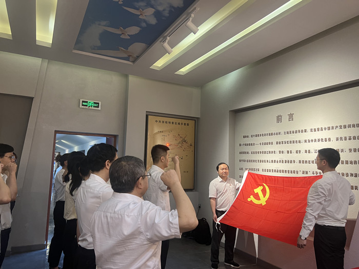 黨員干部重溫入黨誓詞,回憶入黨初心,牢記使命擔(dān)當(dāng)。全體黨員還走進(jìn)中共浙皖特委舊址,聆聽九旬“守宅奶奶”林翠娥紅色守候的故事,接受精神洗禮,汲取奮進(jìn)力量。