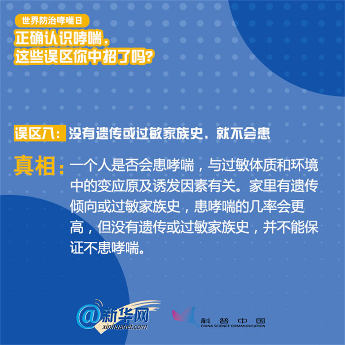 3.其他因素:患過敏性鼻炎、過敏性皮膚病的患者,以及長期接觸某些化學物質(zhì)的人群,其哮喘的發(fā)病率也會高于常人。
