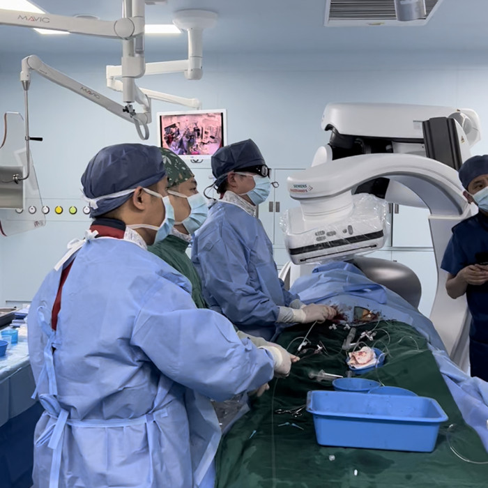 考慮到鄭奶奶年齡大,心功能不全、瓣膜病變復(fù)雜,同時合并升主動脈瘤樣擴(kuò)張、橫位心,外科手術(shù)風(fēng)險大。心血管內(nèi)科、心胸外科、重癥醫(yī)學(xué)科、超聲科、麻醉科和體外循環(huán)團(tuán)隊多學(xué)科協(xié)作,立即進(jìn)行聯(lián)合病例討論,經(jīng)過充分的評估,決定為鄭奶奶行“微創(chuàng)的經(jīng)導(dǎo)管主動脈瓣置換術(shù)”。