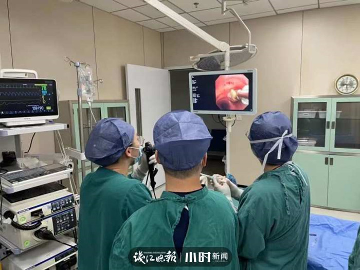 金旭如、盛建輝使用球囊導(dǎo)管和異物鉗,一拖一拽,異物被順利取出,整個手術(shù)僅18分鐘左右。
