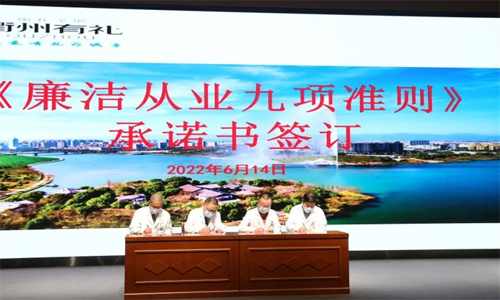 行政職能部門及臨床科室負責(zé)人代表上臺簽訂《廉潔從業(yè)九項準則承諾書》,為依法、規(guī)范執(zhí)業(yè)莊重承諾。