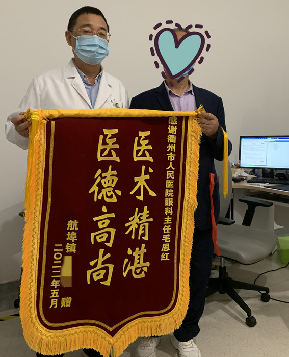 “現(xiàn)在看東西很清楚,謝謝你,毛醫(yī)生。”復(fù)查這天,他特意向毛思紅醫(yī)生送來錦旗表示感謝。