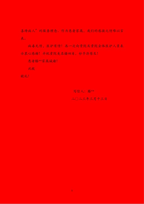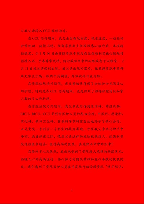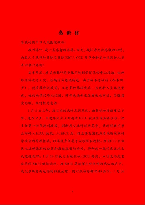 感謝信(致EICU、CCU等多個(gè)科室) 文章來源: 作者: 點(diǎn)擊數(shù):6560 更新時(shí)間:2023-03-21 上一篇: 感謝信(致程科云、柴東劍、陳寶珍、周先富) 下一篇: 感謝信(致心胸外科)
