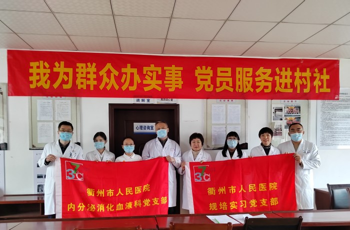 4月1日,規(guī)培實習黨支部聯(lián)合內(nèi)分泌消化血液科黨支部,走進柯城區(qū)九華鄉(xiāng)上鋪村,開展“我為群眾辦實事 黨員服務(wù)進村社”活動。