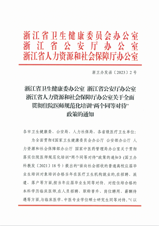 關于全面貫徹住院醫(yī)師規(guī)范化培訓“兩個同等對待”政策的通知 文章來源:教學處 作者: 點擊數:6832 更新時間:2023-06-01 上一篇: 衢州市人民醫(yī)院(溫州醫(yī)科大學附屬衢州醫(yī)院)2024年住院醫(yī)師規(guī)范化培訓招生簡章 下一篇: 全面貫徹住院醫(yī)師規(guī)范化培訓“兩個同等對待”政策