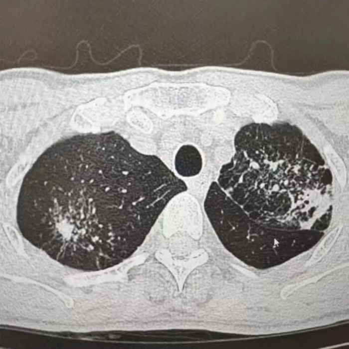 很快,CT報告提示“升結腸、回盲部及回腸末端腸壁增厚伴局部淋巴結腫大,考慮腸結核”。之后,進一步做了胸部CT檢查,提示“肺部浸潤灶:肺結核考慮”。