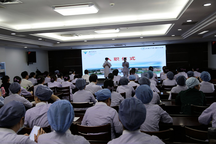 “余謹(jǐn)以至誠,于上帝及會眾面前宣誓……”在護(hù)理部主任齊向紅的帶領(lǐng)下,全體新護(hù)士肅然起立,右手舉拳莊嚴(yán)宣誓,以錚錚的誓言表達(dá)將畢生精力奉獻(xiàn)護(hù)理事業(yè)、不辱使命的決心。