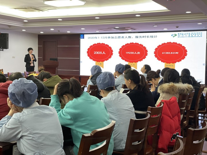 愛心服務(wù)中心負(fù)責(zé)人葉惠球?qū)?020年志愿者工作進(jìn)行總結(jié)。