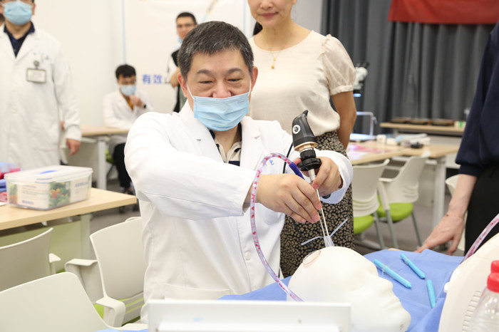 當(dāng)天,還舉辦了首期“神經(jīng)內(nèi)鏡血腫清除術(shù)”DTS實(shí)操訓(xùn)練培訓(xùn)班。我院神經(jīng)外科主任醫(yī)師揭園慶進(jìn)行現(xiàn)場手術(shù)模擬演示。