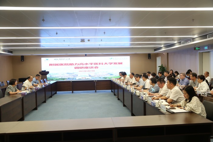 6月19日,溫醫(yī)大黨委書記呂一軍一行來到我院,圍繞附屬醫(yī)院助力高水平醫(yī)科大學發(fā)展進行調(diào)研座談。市衛(wèi)健委黨委書記、主任廖利軍,醫(yī)院領(lǐng)導(dǎo)班子成員,相關(guān)職能部門負責人,以及溫醫(yī)大派駐專家參加。