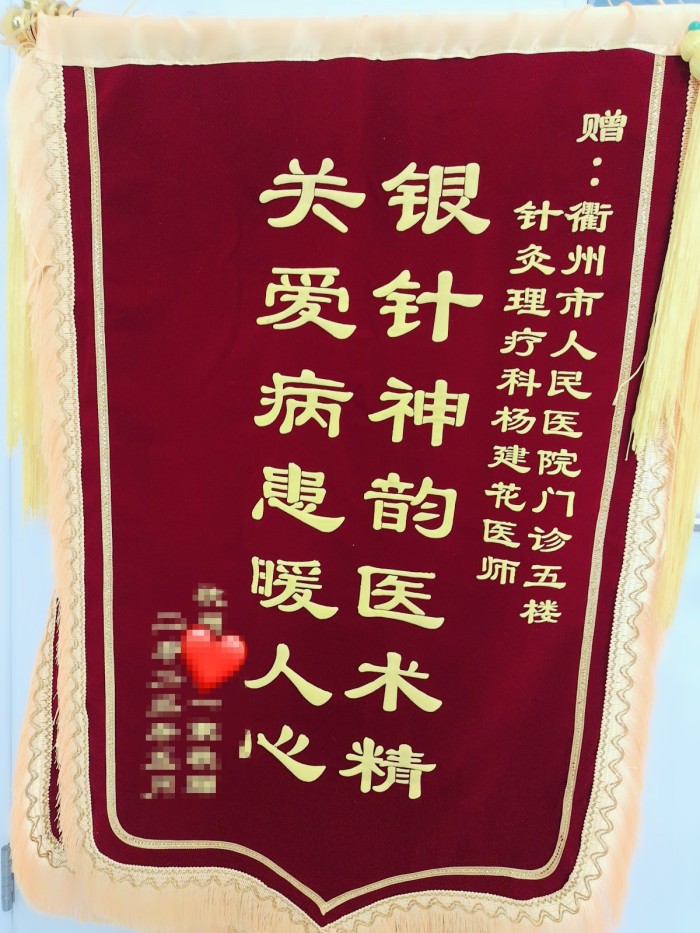 近日,來(lái)自杭州的李女士將一面寫著“銀針神韻醫(yī)術(shù)精,關(guān)愛病患暖人心”的錦旗寄送到我院針灸理療科,感謝楊建花副主任中醫(yī)師。