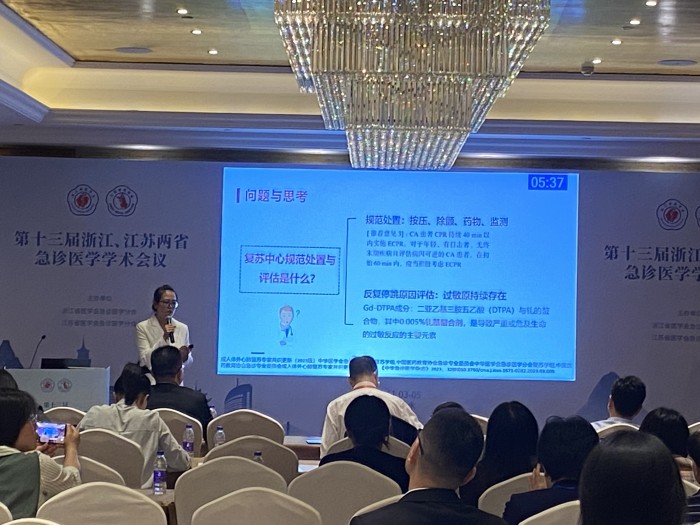 在江浙兩省心肺復(fù)蘇案例大賽環(huán)節(jié)中,參賽選手運(yùn)用自己獨(dú)特的角度,介紹了不同的心肺復(fù)蘇案例,無論是病因的診斷,還是救治的流程,每位演講者都給大家留下了深刻的印象。