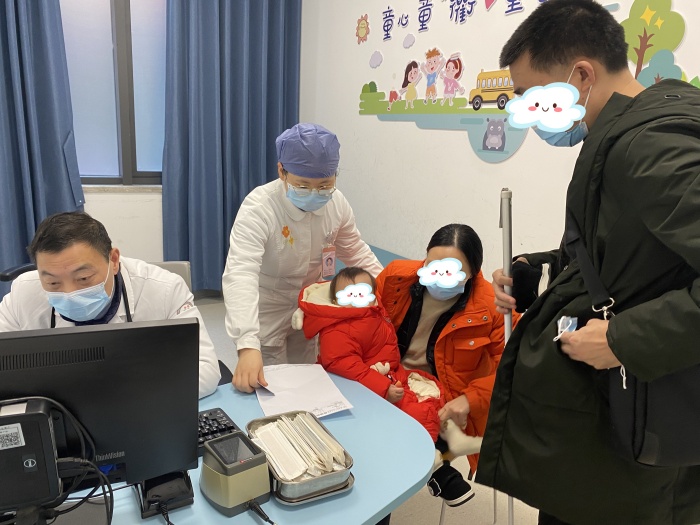 從為寶寶掛號、測體溫、詢問病史、就診,到取藥喂藥,楊淑嫻還詳細(xì)交待注意事項(xiàng),并特意在喂藥針筒上做了可觸摸的標(biāo)記,方便夫婦倆后續(xù)喂藥時(shí),確保劑量正確。