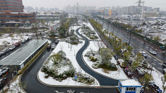 北風(fēng)吹,雪花落,衢城銀裝素裹。不用去爾濱,在千年古城衢州,衢醫(yī)閩江大道瞬間成“雪國(guó)”。