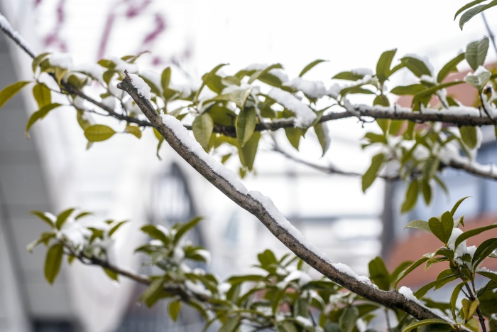 雪靜靜地落,就像無數(shù)的白色絨毛,掛在枝頭,鋪滿道路,點(diǎn)綴衢醫(yī)的角角落落......