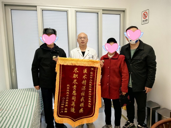 春節(jié)期間,一位抗美援越老兵在家屬陪同下攜錦旗來到疼痛醫(yī)學(xué)中心,一邊訴說著感謝的話語,一邊將錦旗送到徐慧勝醫(yī)生的手中。