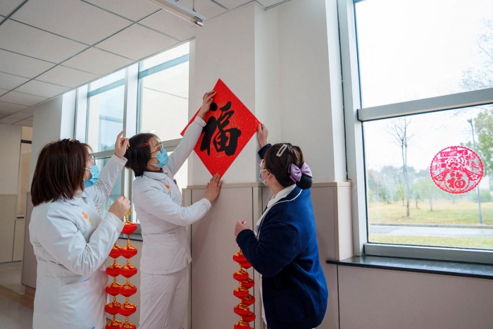 龍年春節(jié)將至,大街小巷到處洋溢著新春的氣息?!皩ξ覀儊碚f,最美好的年味,莫過于患者的健康?!备∈簠^(qū)負(fù)責(zé)人介紹說,把病區(qū)布置得年味濃郁,患者心情也會好起來,也體現(xiàn)了新春佳節(jié)的溫馨與暖意,共同祈福來年身體健康、生活安康。