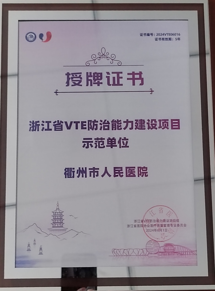 我院獲評浙江省VTE防治能力建設(shè)項目示范單位