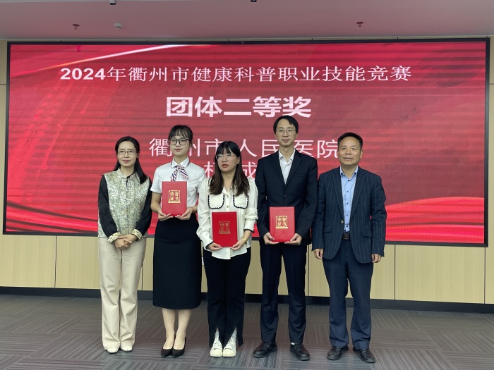 我院參賽選手在此次技能競賽中表現(xiàn)優(yōu)異,他們以通俗易懂的語言和新穎獨特的表現(xiàn)方式,將生澀難懂的醫(yī)學知識轉化為通俗易懂的健康科普內(nèi)容。最終,341病區(qū)護士長江超獲得“金牌講師”稱號,急診科汪婭君、李芝萍、徐濤組成的團隊獲得團體二等獎。