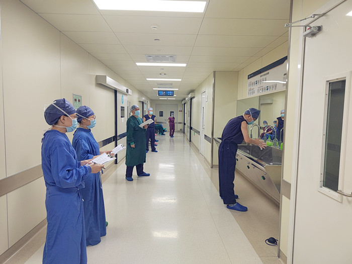經(jīng)前期初賽選拔,來自肝膽外科、手術(shù)室、 醫(yī)學(xué)美容科、神經(jīng)外科、重癥監(jiān)護(hù)室、胃外科、肛門盆底外科、乳甲外科、手足外創(chuàng)傷骨科、口腔科的10位參賽選手參加決賽,賽事以“理論+外科手消毒操作”的形式進(jìn)行。