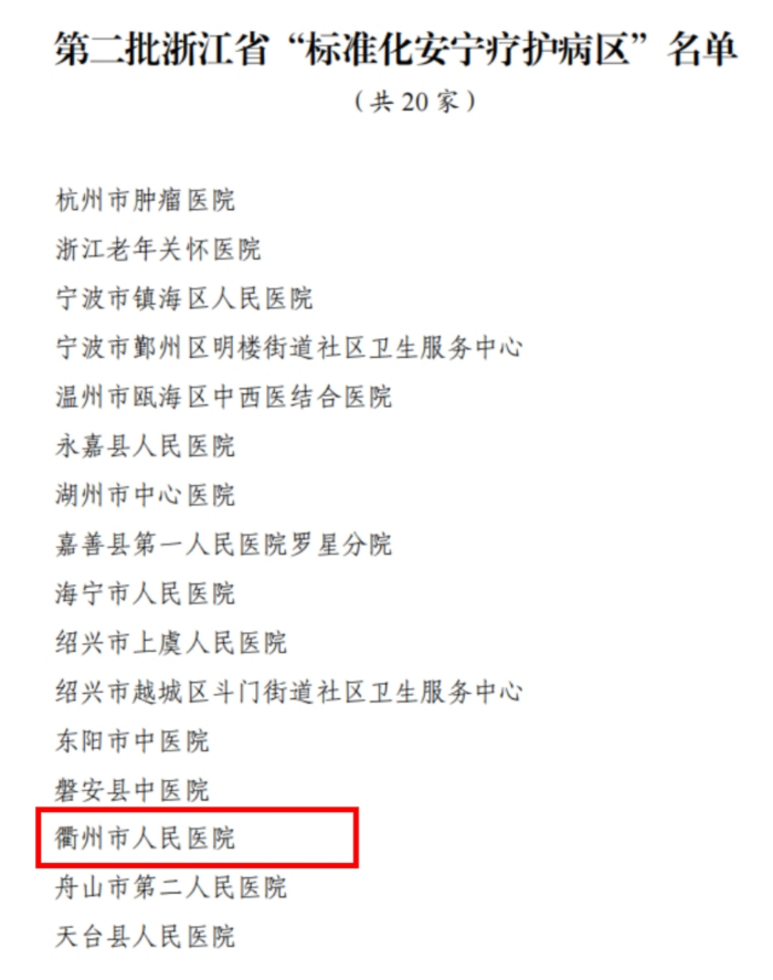 近日,浙江省衛(wèi)生健康委公布第二批省級“標準化安寧療護病區(qū)”名單公布,我院成功入選。