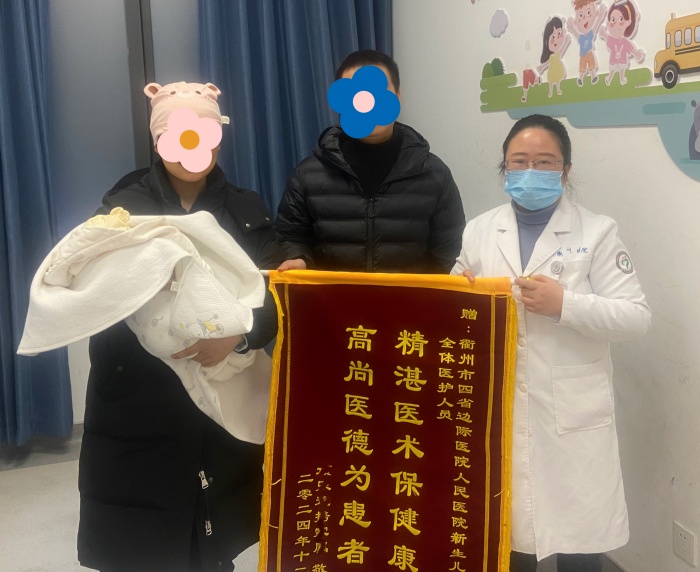 于是在孩子滿月后,寶爸寶媽特意帶著寶寶和錦旗向新生兒科的醫(yī)護(hù)人員表示感謝。