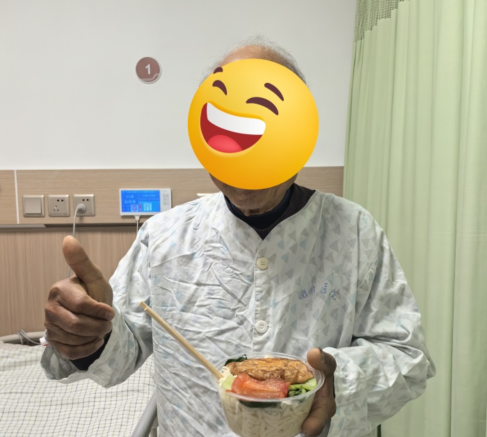 原來(lái)這天是1床吳爺爺?shù)陌耸髩?,徐淑芬護(hù)士長(zhǎng)帶領(lǐng)科室人員來(lái)到吳爺爺床前,為吳爺爺送上熱氣騰騰的雞蛋生日面、唱生日快樂(lè)歌,并送上最真誠(chéng)的祝福。