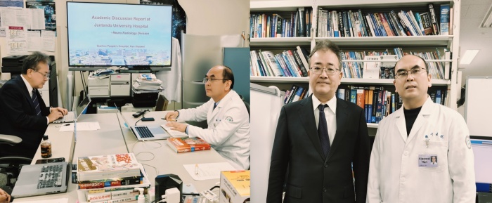 此前,韓小偉博士就我院iRADIOLOGY工作站建設與期刊未來發(fā)展情況,與同為iRADIOLOGY編委的順天堂醫(yī)院放射科副主任Murakami教授進行研討交流。雙方圍繞醫(yī)學影像熱點領域國際征稿的意義和可行性作探討。