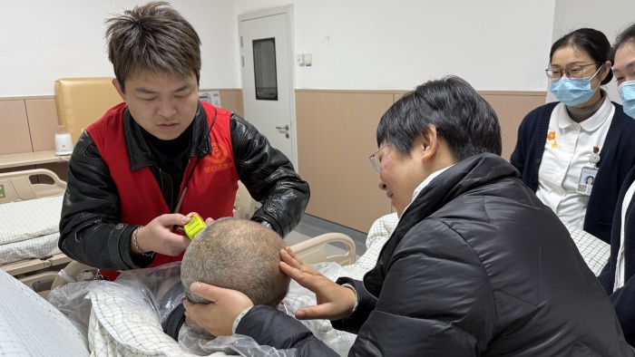 “他愿意來病床前為我父親義務(wù)理發(fā),作為家屬我很欣慰。”陳大爺?shù)呐畠赫f。