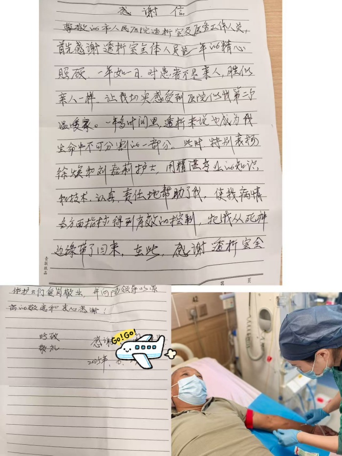 清晨,血透中心的醫(yī)護(hù)人員在意見(jiàn)箱里發(fā)現(xiàn)了一封特別的信件。患者周先生用質(zhì)樸的文字寫道:“這里就像我的第二個(gè)家,你們不是親人,卻勝似親人。”